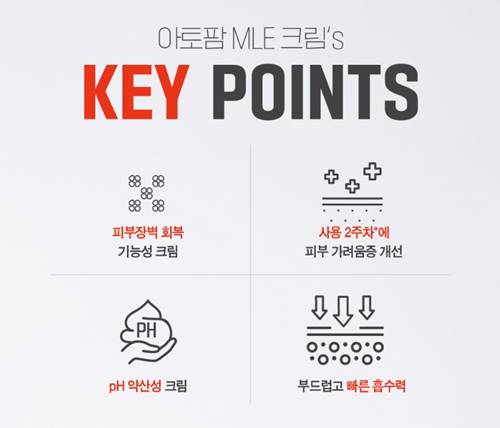 네오팜의 독자 개발 세라마이드 성분을 바탕으로 한 피부 장벽 기술 엠엘이(MLE) 제형이 피부에 보호막을 형성해 건조하고 민감한 피부 장벽을 강화에 도움을 주도록 만들어진 크림입니다. 특허 성분인 ‘오메가 세라마이드’와 지질 생성을 촉진시키는 ‘리피모이드’ 성분을 적용해 건조하고 민감한 피부의 피부 장벽 강화 및 보습·보호 기능을 통해 가려움 개선에도 효과적이라고 해요.