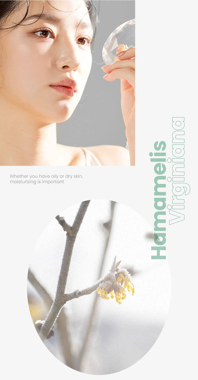 #TeaTreeExtract 애플민트 잎 추출물, 버지니아 풍년화 잎 추출물, 시카 콤플렉스 피부 진정에 특화된 다양한 식물유래 성분이 진저와 보습에 도움을 주며, 병풀에서 유래한 #Cica Complex가 피부를 편안하게 다스려줍니다. 버지니아 풍년화 잎 추출물 피부 모공 수렴에 도움을 주고 촉촉하게 수분을 공급해 최적의 피부 컨디션으로 케어해 줍니다. 소듐하이알루로네이트 각질 정돈 후 피부 수분을 뺏겨 건조해지기 쉬운 피부에 촉촉하게 수분을 충전해 줍니다.