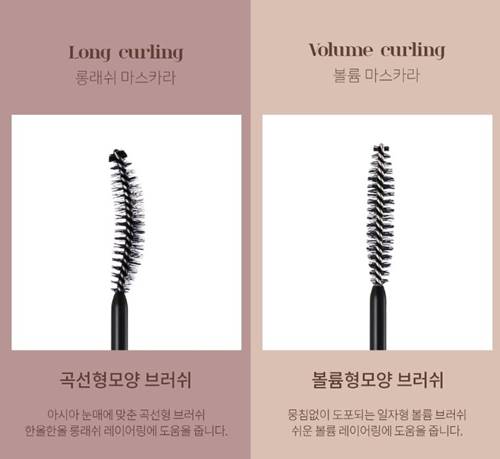 뮤드 인스파이어 컬링 마스카라는 롱래쉬 마스카라와 볼륨 마스카라 두 가지 종류로 나뉩니다. 롱래쉬 마스카라는 속눈썹을 길고 연출하며, 속눈썹을 더욱 강조하고자 할 때 적합한 제품입니다. 반면에 볼륨 마스카라는 속눈썹에 볼륨감을 부여하여 풍성하고 두툼한 느낌을 연출하는 데에 효과적입니다.